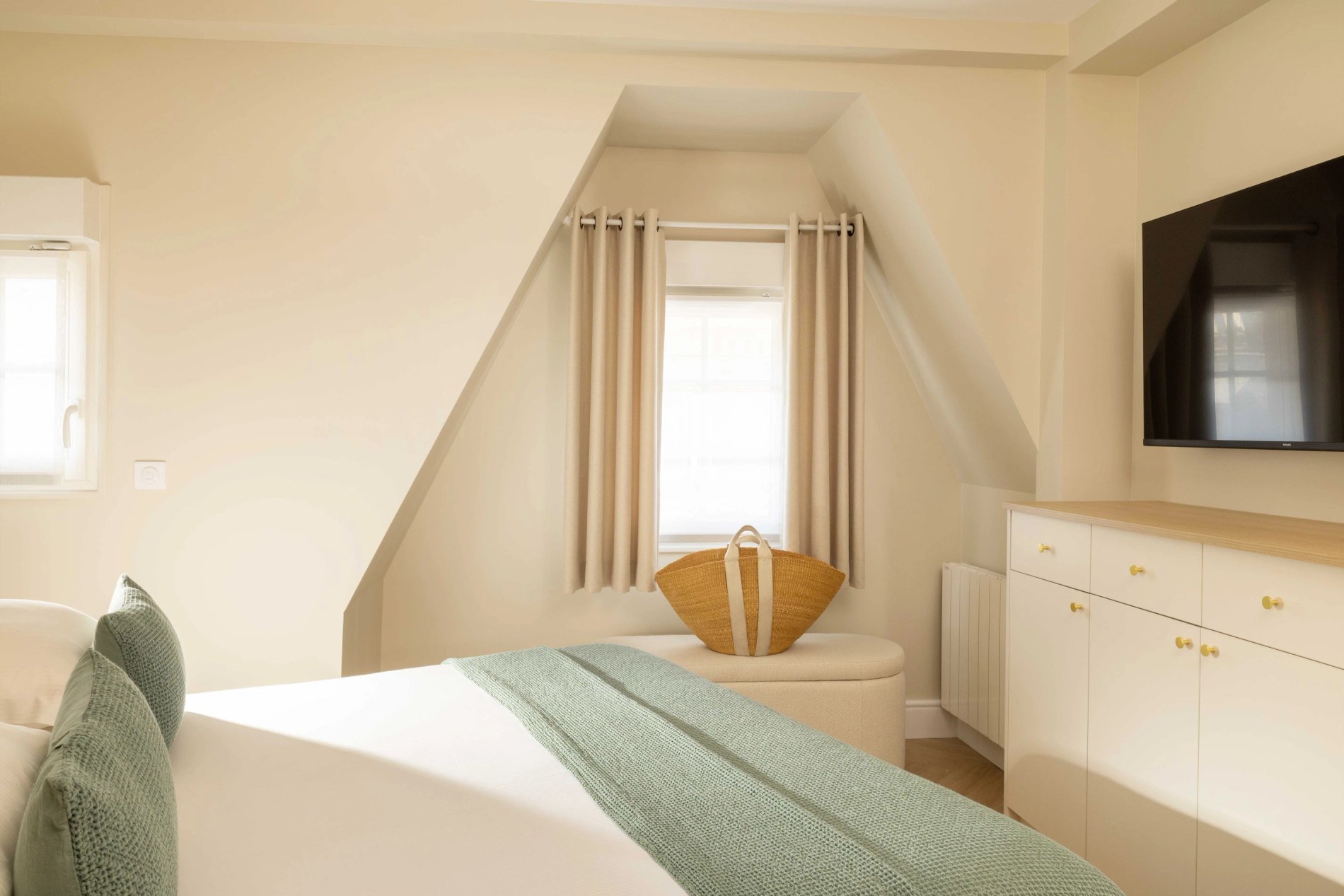 Pour la petite histoire, en 2018, Virginie Dutant fait l’acquisition d’une maison de pêcheur adjacente à l’hôtel et décide de la restaurer et de l’agrandir, afin de la diviser en 4 appartements. Elle rebaptise cette maison la « Villa Léa », petit clin d’œil à sa fille. Dans cette maison de famille réinventée, chaque appartement a été conçu comme un véritable cocon, mêlant élégance intemporelle et esprit maison de vacances. Vous profiterez du confort d’un appartement indépendant avec la possibilité de services hôteliers à la carte. Envie d’un petit déjeuner buffet, d’un ménage quotidien ou d’une conciergerie pour vous renseigner, nous sommes là pour vous. Parfaitement équipés, chaque appartement a été conçu pour vous offrir un maximum de confort.
