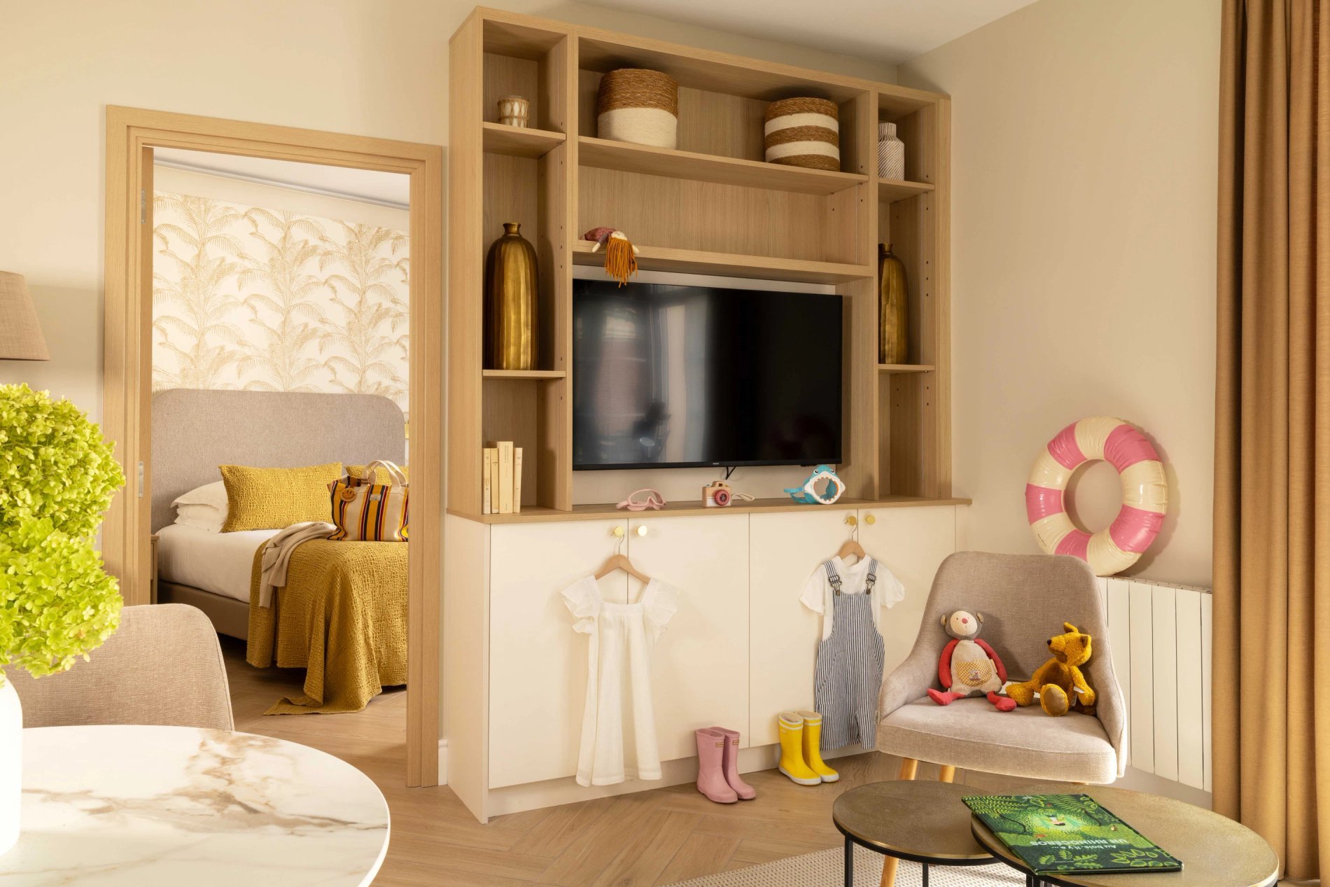 Nos chambres familiales et nos appartements spacieux et modulables peuvent accueillir petits et grands dans un cadre chaleureux. Pour les plus jeunes, nous mettons à disposition lit bébé, chaise haute, jeux et livres. De plus, la plage et ses nombreuses activités ne sont qu'à quelques pas.